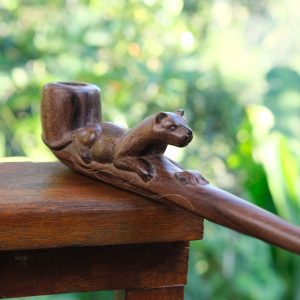 Оцените элегантность этой трубки для курения длиной 21 см, изготовленной из темного дерева Соно с впечатляющим мотивом ягуара. Прочная конструкция и детализированное художественное оформление обеспечивают роскошный процесс курения. Идеально подходит как для коллекционеров, так и для ежедневного использования.