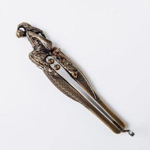 The body of Bushido khomus is completed in the form of an elegant lady holding a samurai sword. The metal that has been used to produce this modern jew’s harp instrument is brass, which has been associated with reliability and magical traits. It produces very soft sounds and surprises players with high sensitivity of the instrument.