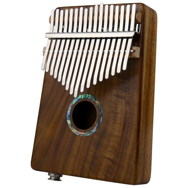 Featuring a natural finish to bring out the orange highlights in Koa, this Kalimba uses a beautiful pearl inlay rosette as a final touch.
