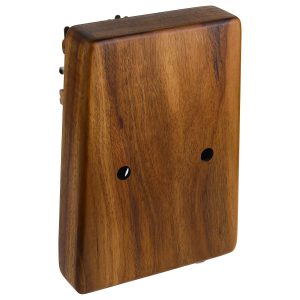The Ripple Electric Kalimba uses the same 1/4″ output jack that guitars, keyboards, and electric ukuleles use. You can plug this directly into a keyboard amp or acoustic amp using a standard instrument cable.