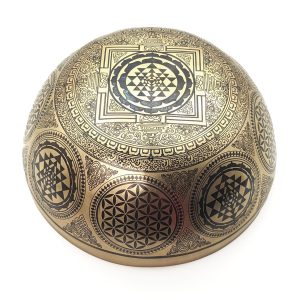 The Mandala series is unique – the design on the singing bowl is larger, more complex, and the numerous details depict the Tibetan representation of the universe as an intricate Mandala.