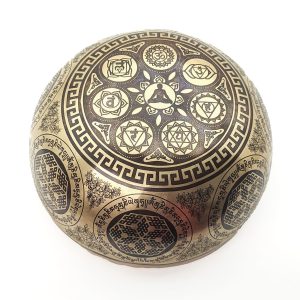 The Mandala series is unique – the design on the singing bowl is larger, more complex, and the numerous details depict the Tibetan representation of the universe as an intricate Mandala.