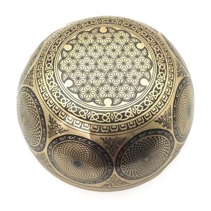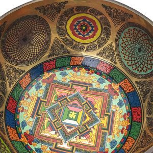 The Mandala series is unique – the design on the singing bowl is larger, more complex, and the numerous details depict the Tibetan representation of the universe as an intricate Mandala.