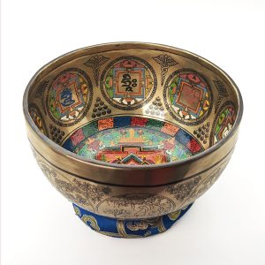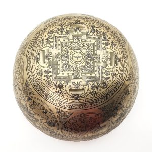 The Mandala series is unique – the design on the singing bowl is larger, more complex, and the numerous details depict the Tibetan representation of the universe as an intricate Mandala.