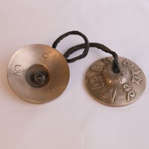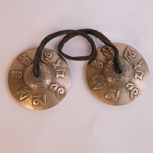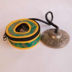 Bronze Tingsha "7 Mantra Symbols - Om Mani Padme Hum" (Tibetan Bells) (7.5 cm, 300 gr) (+ case)Bronze Tingsha “7 Mantra Symbols – Om Mani Padme Hum” (Tibetan Bells) (7.5 cm, 300 gr) (+ case)
