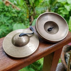 Bronze Tingsha "Carving Flowers" (Tibetan Bells) (8.6 cm, 600 gr) (+ case)Bronze Tingsha “Carving Flowers” (Tibetan Bells) (8.6 cm, 600 gr) (+ case)