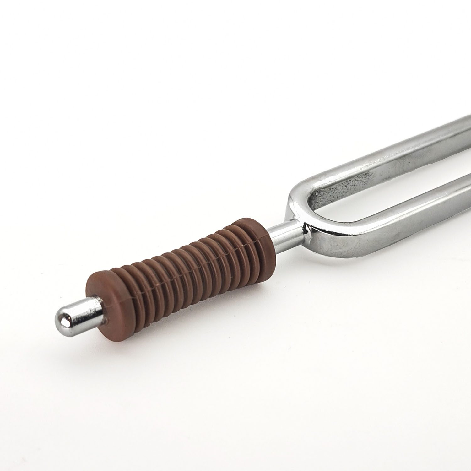 A high-quality tuning fork made of steel alloy with a rubberized handle, it has a long-lasting vibration (but is inferior to MEINL tuning forks).
